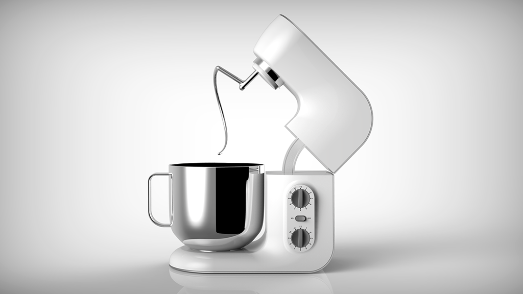 產(chǎn)品定位為一款使用環(huán)境定位兼容普通家用和商用的多功能型廚房料理機,具有揉面,打蛋,攪拌等功能。傳動部分主要是皮帶帶動齒輪傳送攪拌力。產(chǎn)品機身材質(zhì)采用鑄鋁機身材質(zhì)和ABS工程塑料搭配,與傳統(tǒng)單純鑄造機身相比具有更加輕巧的造型,不同的材質(zhì)對比也彰顯產(chǎn)品的品質(zhì)。